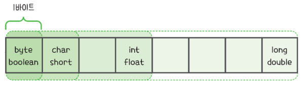 byte(1바이트), short(2바이트), int(4바이트), long(8바이트)