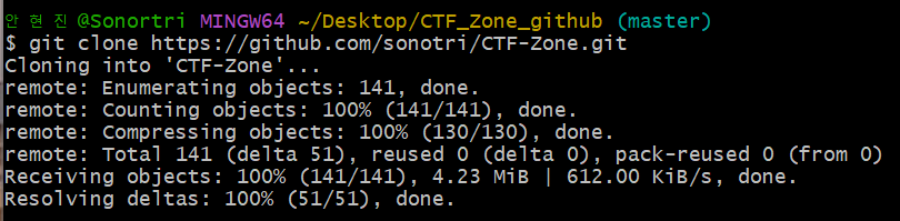 #git clone [해당 레지스토리 주소].git