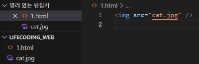 이미지를 웹페이지에 포함시킬 <img>태그를 사용한다.