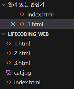 [파일명.확장자명]을 통해 파일을 만든다. 나는 1.html로 만들었다.