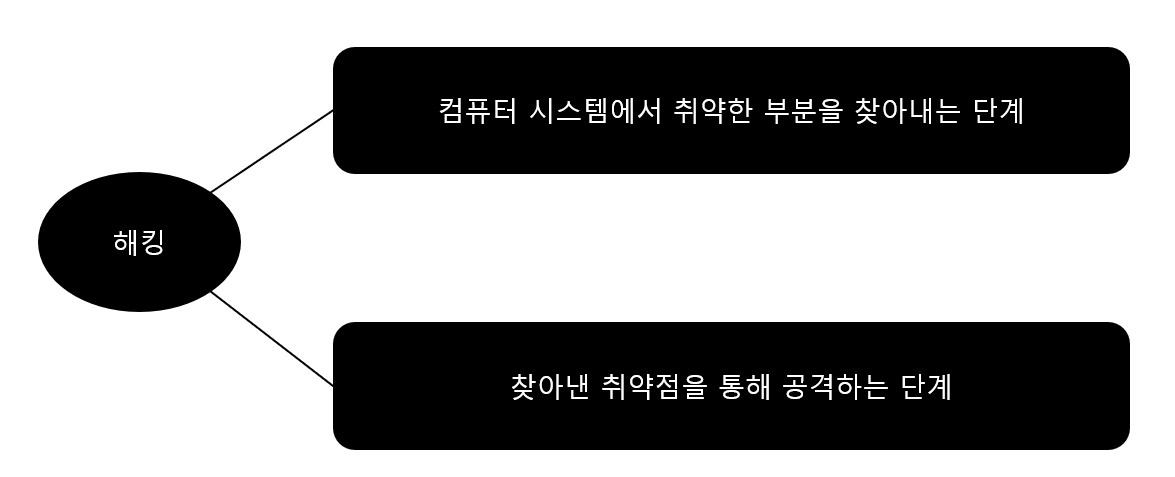 앞에서 해킹 = 취약한 부분을 찾아내고, 이를 공격하는 과정이라고 정의 내렸다.