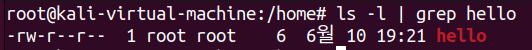 아래 사진은 ls -l 명령 결과에서 hello가 포함된 행을 찾아 출력하는 예시이다.