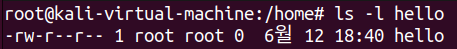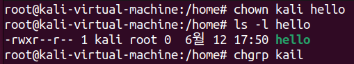 hello 파일의 소유자를 root에서kali로 변경하는 실습을 해보자.