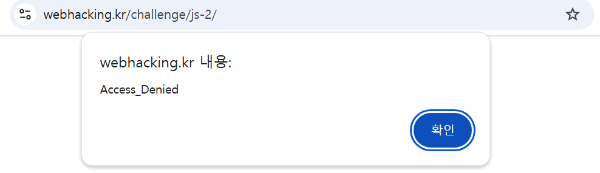 문제에 들어가면 Access_Denied라는 alert가 뜨고, webhacking.kr 창으로 이동한다.