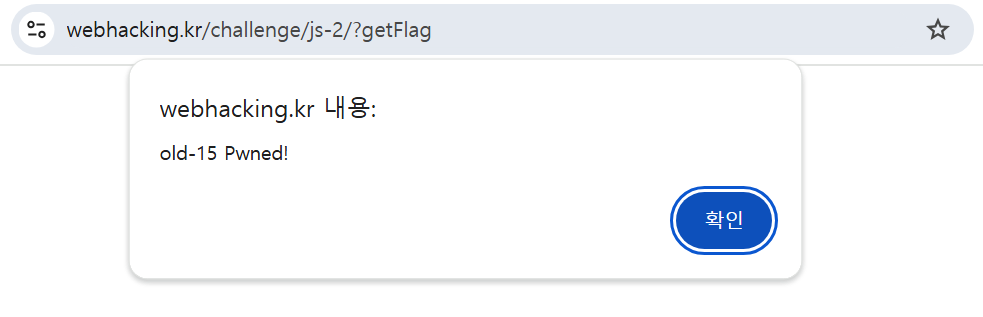 alert창이 나온다는 점, 주소창이 js-2로 되어있다는 점에서 페이지가 javascript에 의해 작동하는 것으로 보인다.